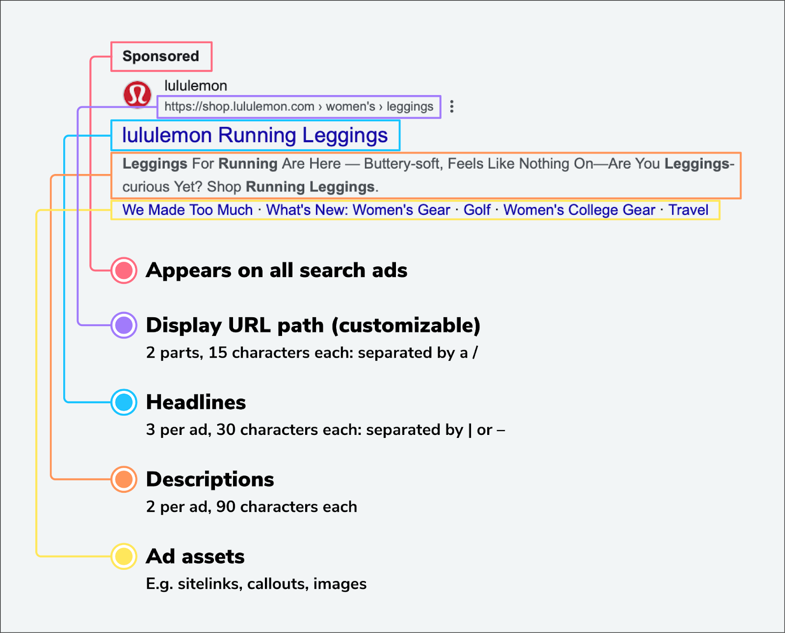 When creating Responsive Search Ads (RSAs), there are 4 major ad components that you need to optimize for prospective customers on Google: